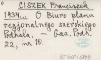 CISZEK Franciszek 1934... O Biuro planu regjonalnego szerokiego Podhala.