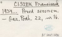 CISZEK Franciszek 1934... Uwagi przedsezonowe.