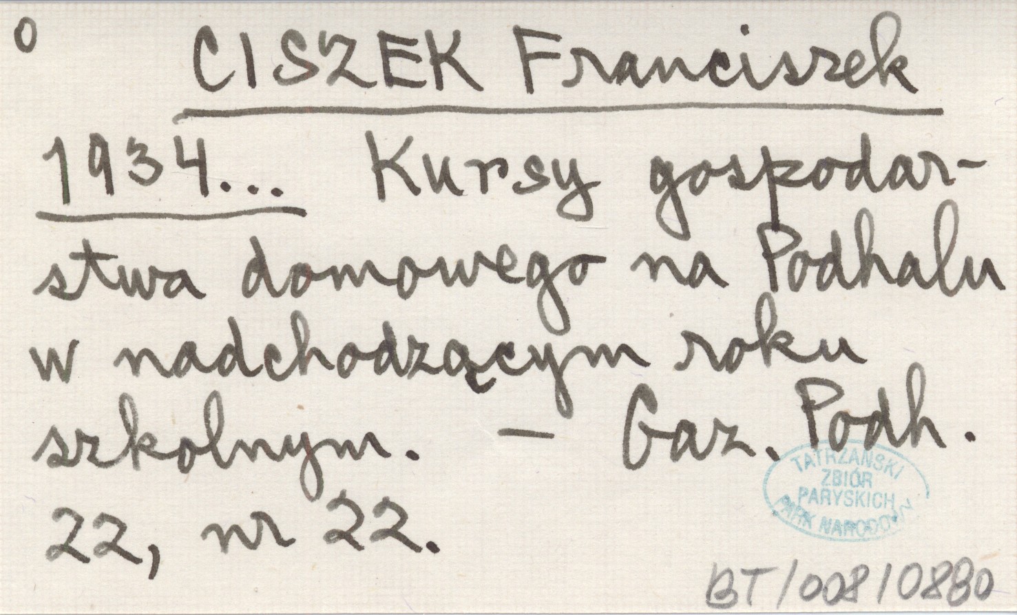 CISZEK Franciszek 1934... Kursy gospodarstwa domowego na Podhalu w nadchodzącym roku szkolnym.