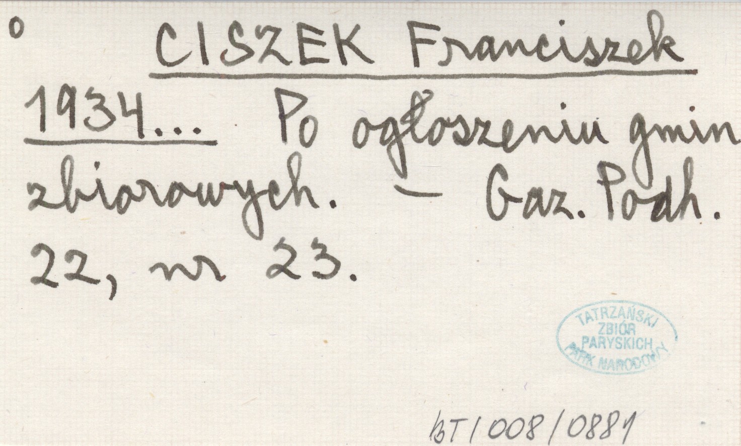 CISZEK Franciszek 1934... Po ogłoszeniu gmin zbiorowych.