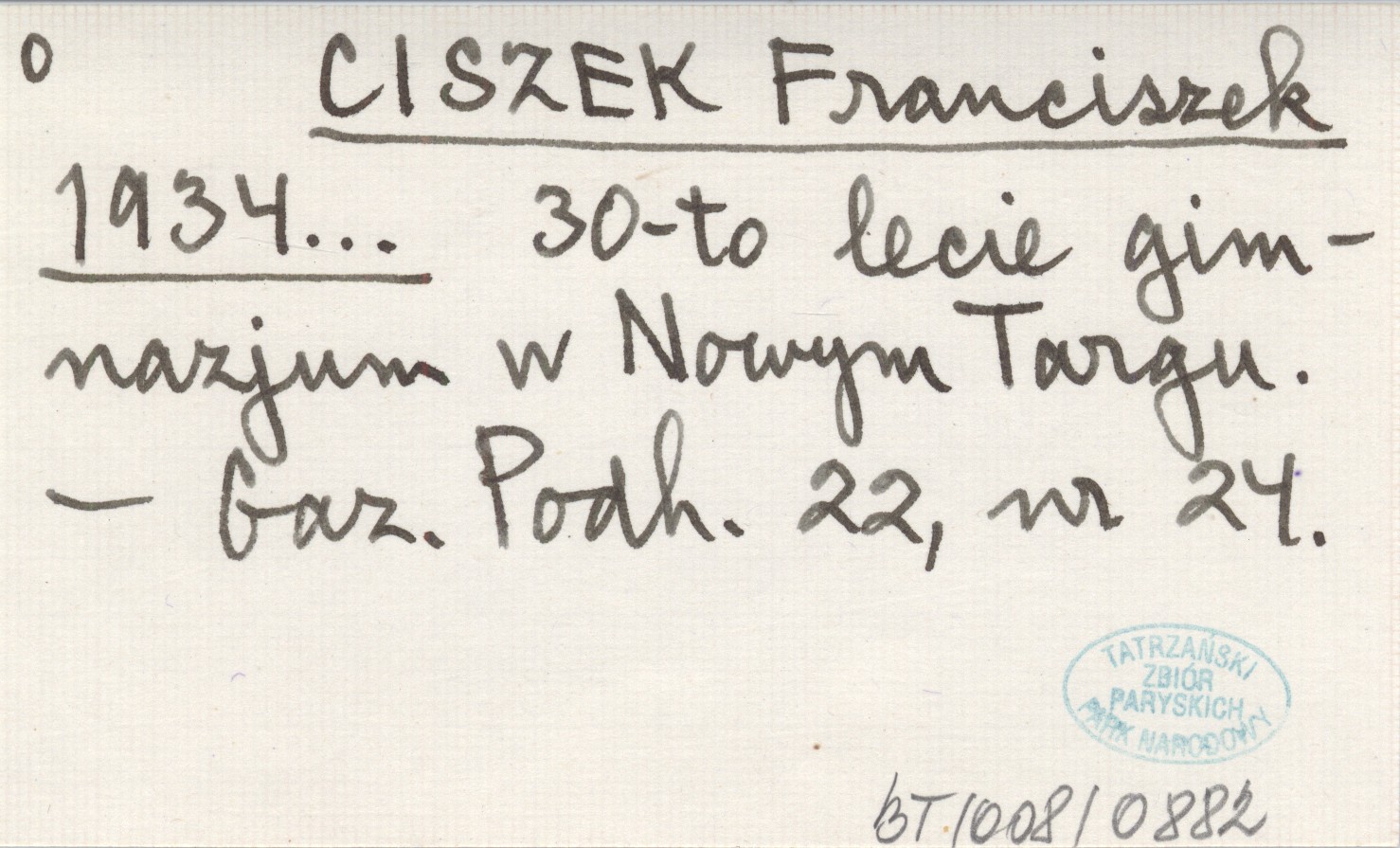 CISZEK Franciszek 1934... 30-to lecie gimnazjum w Nowym Targu.