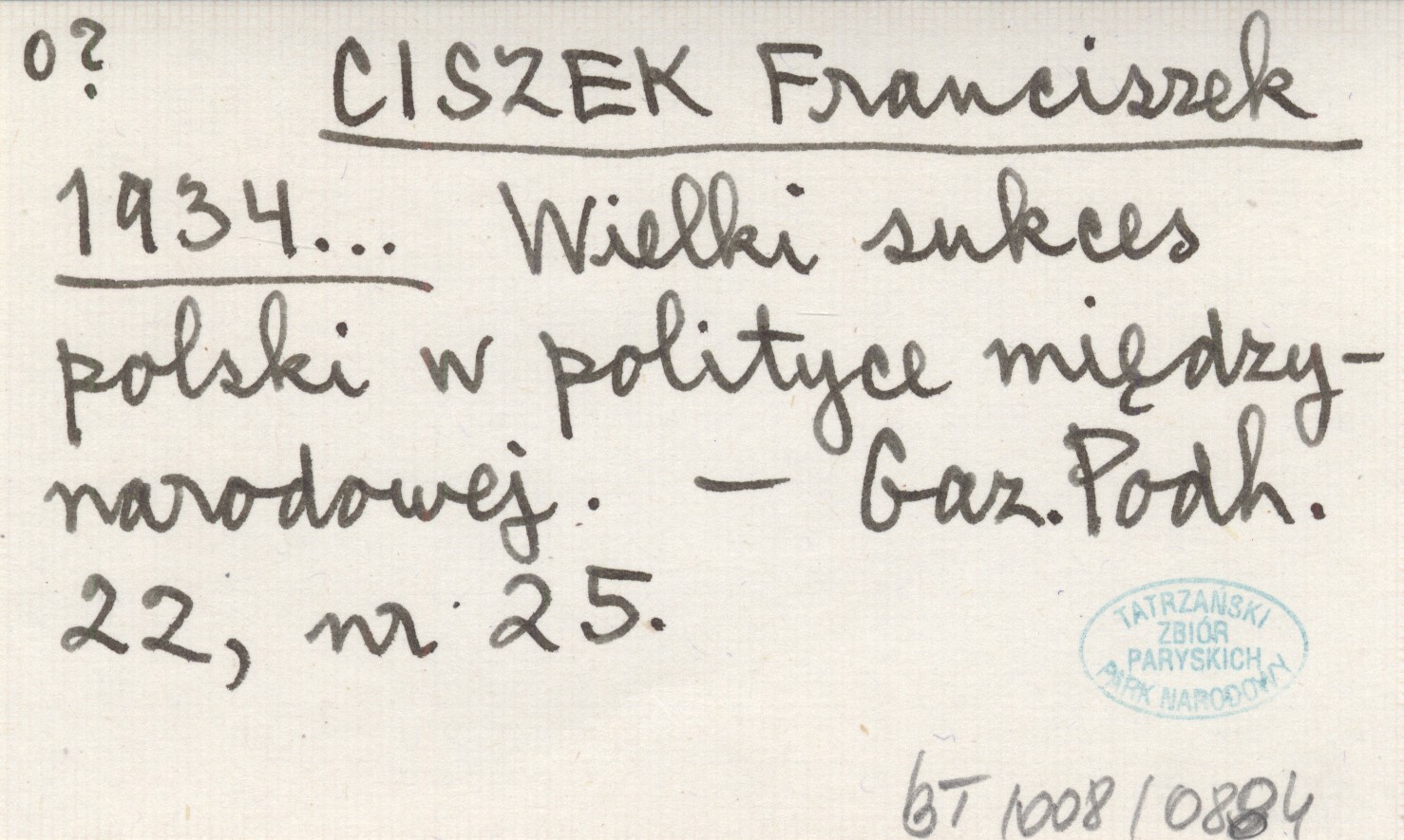 CISZEK Franciszek 1934... Wielki sukces polski w polityce międzynarodowej.