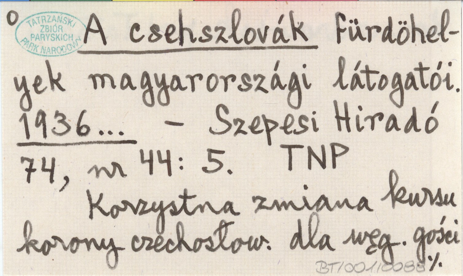 A csehszlovák fürdöhelyek magyarországi látogatói. 1936...