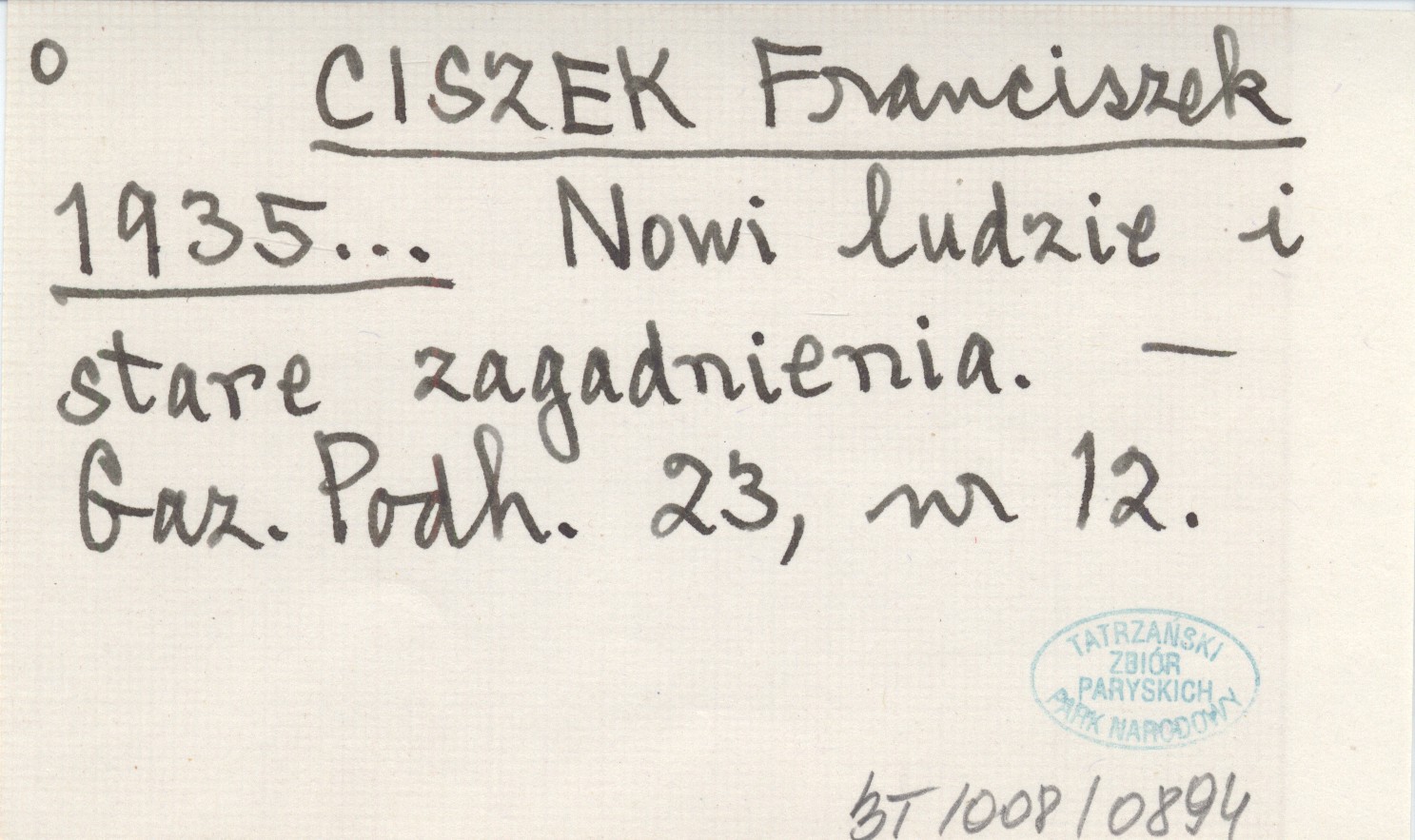 CISZEK Franciszek 1935... Nowi ludzie i stare zagadnienia.