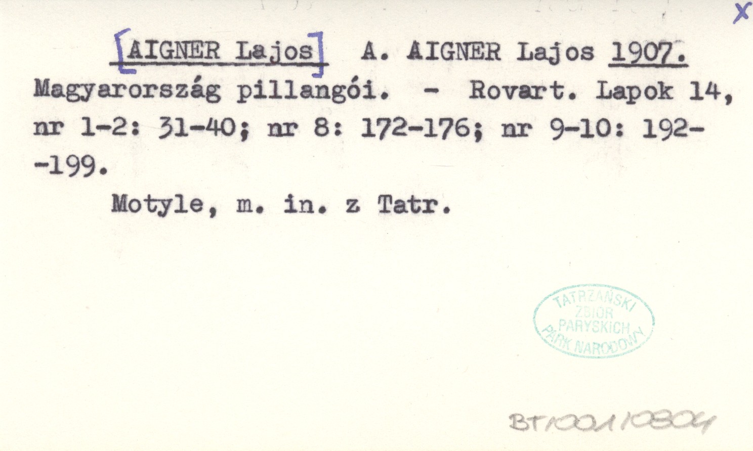 A. AIGNER Lajos [AIGNER Lajos] 1907 Magyarország pillangói.