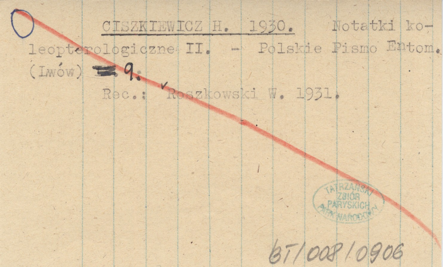 Polskie Pismo Entomologiczne (Lwów) , 9. REC: Roszkowski W. 1931.