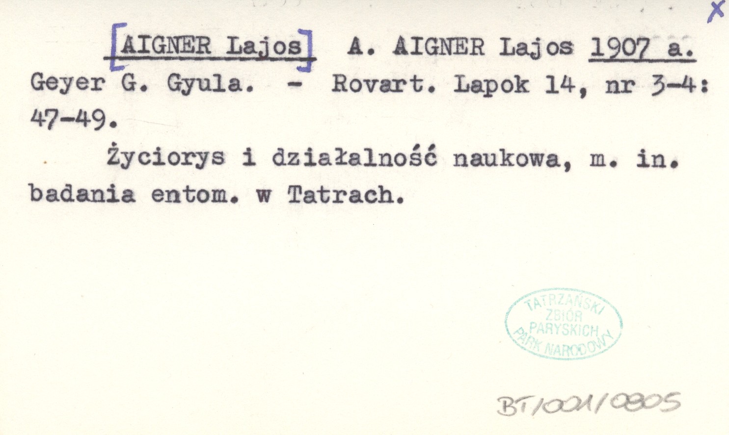 A. AIGNER Lajos [AIGNER Lajos] 1907 a Geyer G. Gyula.