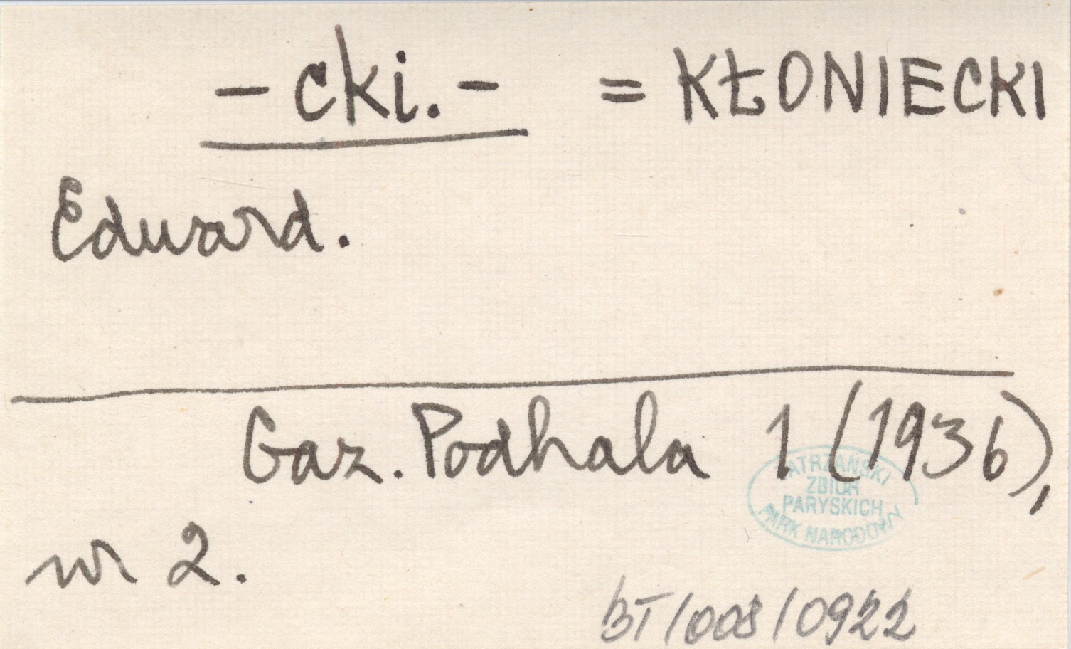 -cki.- KŁONIECKI Edward Gazeta Podhala 1 (1936), nr 2.