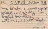 CIURUŚ Julian 1961 Pora kotelni a wzrost jagniąt polskiej owcy górskiej.