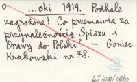 ...cki 1919 Podhale zagrożone! Co przemawia za przynależnością Spiszu i Orawy do Polski?