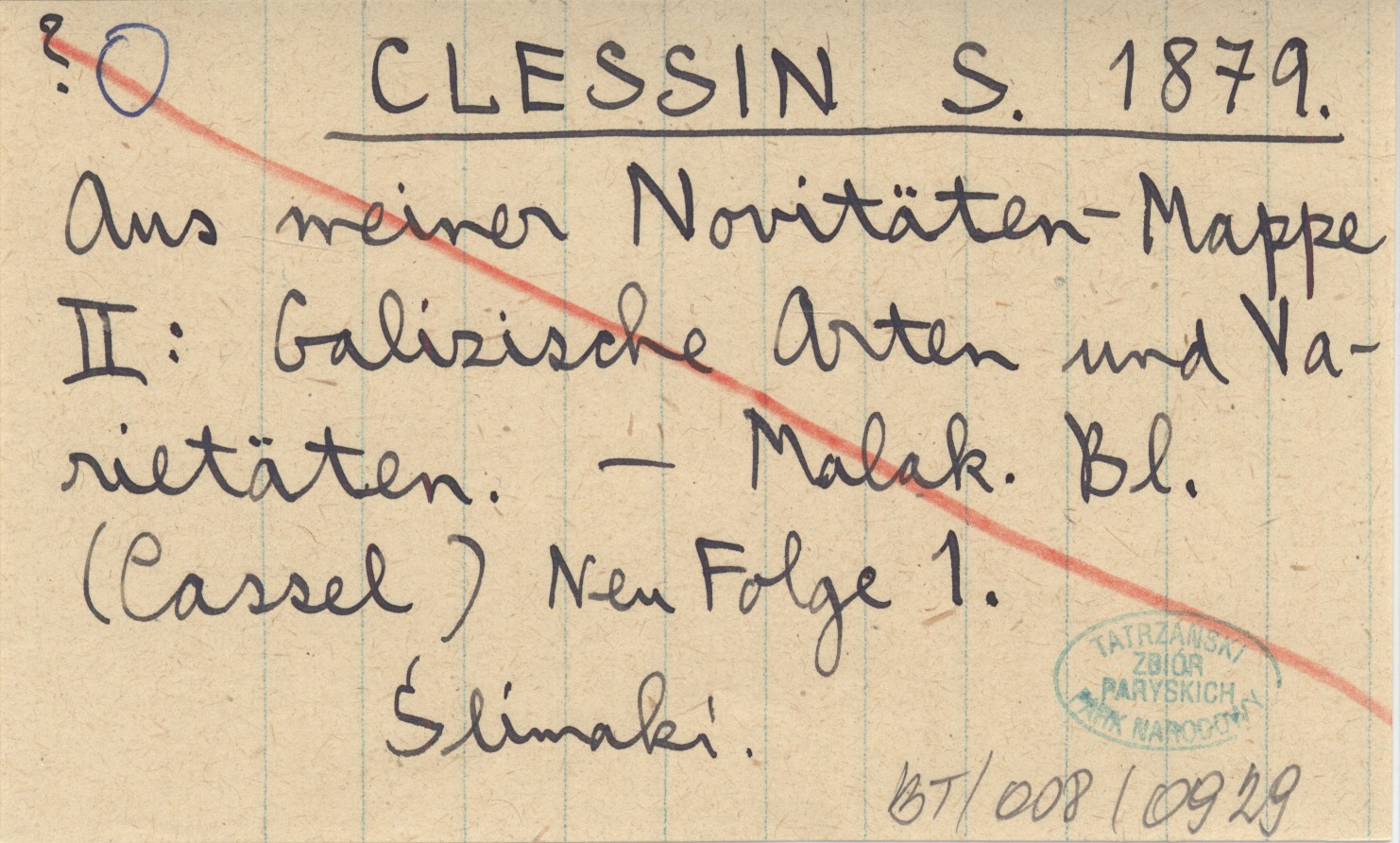 CLESSIN S. 1879 Aus meiner Novitäten-Mappe II: Galizische Arten und Varietäten.