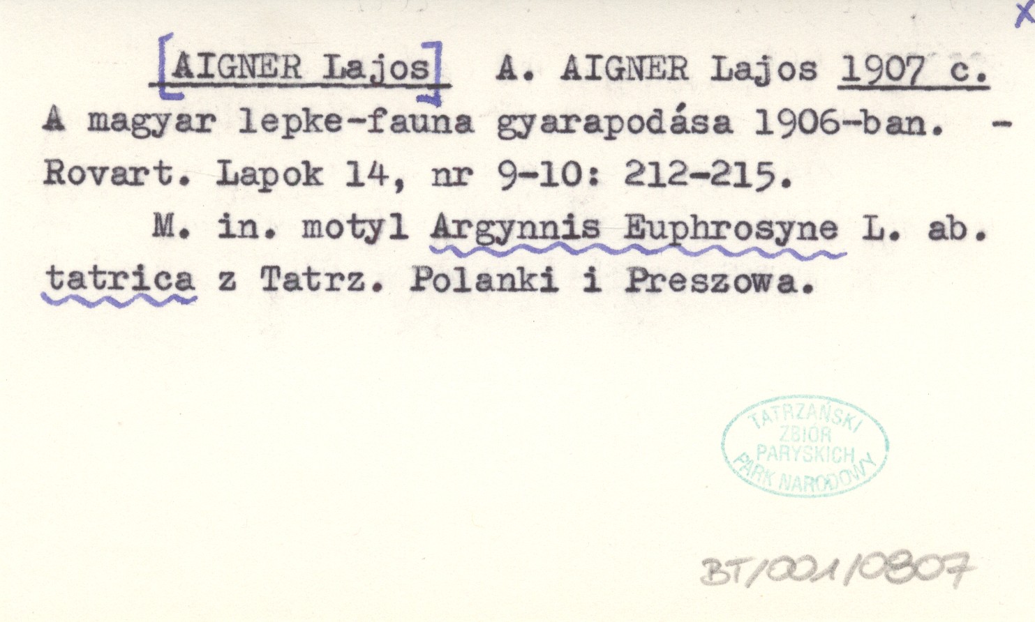 A. AIGNER Lajos [AIGNER Lajos] 1907 c A magyar lepke-fauna gyarapodása 1906-ban.