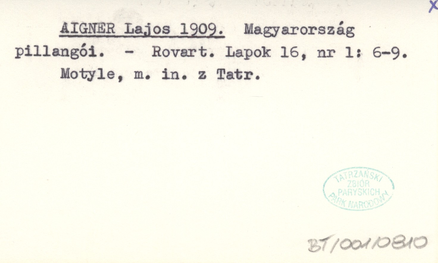 Rovart. Lapok, 16, nr 1: 6-9. Motyle, m. in. z Tatr.