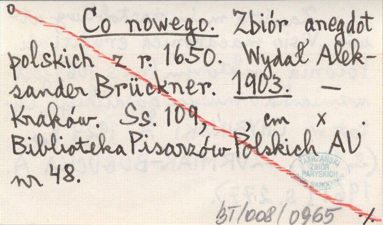 Co nowego. Zbiór anegdot polskich z r. 1650. Wydał Aleksander Brückner. 1903