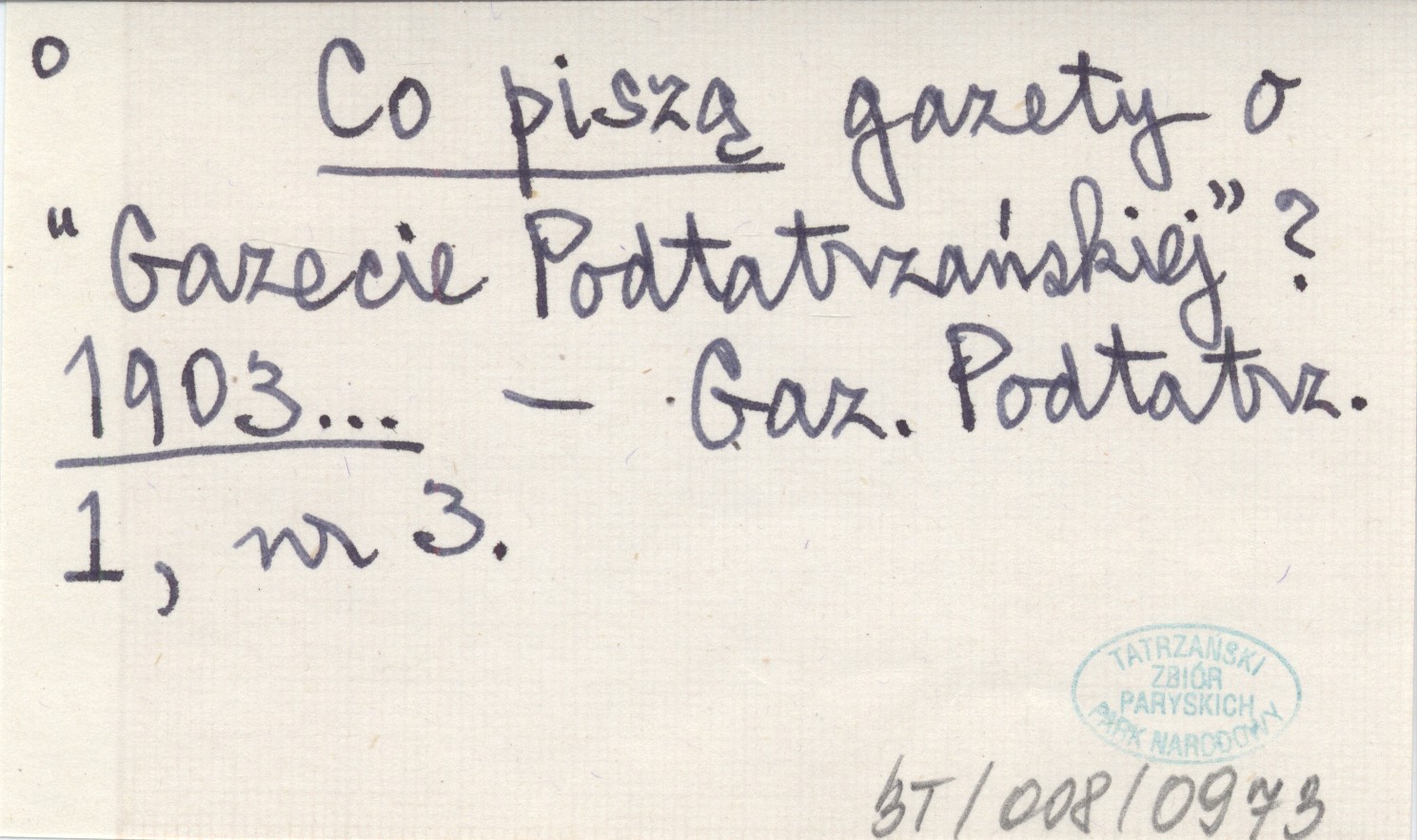 Co piszą gazety o "Gazecie Podtatrzańskiej"? 1903...