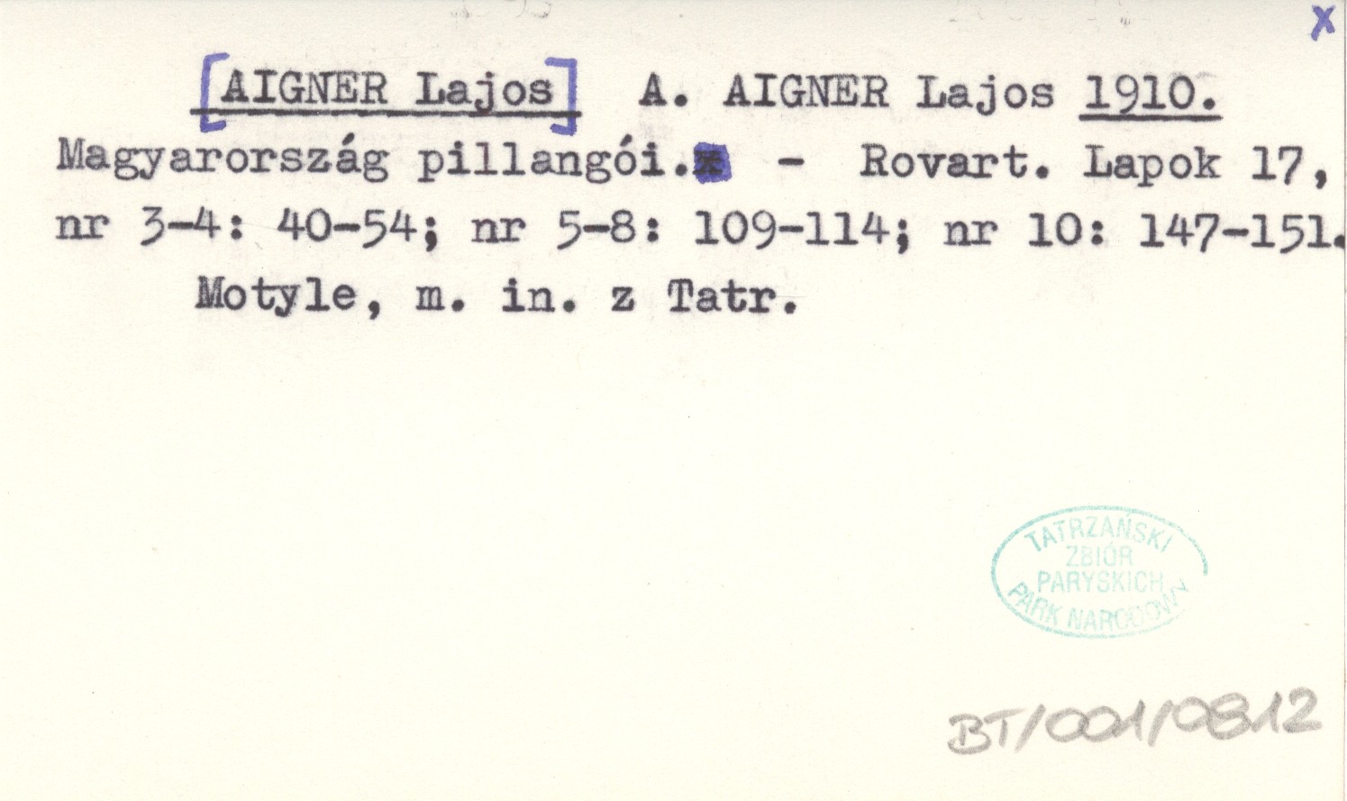 A. AIGNER Lajos [AIGNER Lajos] 1910 Magyarország pillangói.