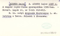 A. AIGNER Lajos [AIGNER Lajos] 1907 c A magyar lepke-fauna gyarapodása 1906-ban.