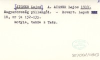 A. AIGNER Lajos [AIGNER Lajos] 1907 Magyarország pillangói.