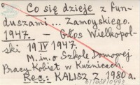 Co się dzieje z funduszami ... Zamoyskiego. 1947