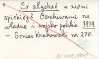 Co słychać w ziemi spiskiej? Oczekiwanie na władze i wojsko polskie. 1919