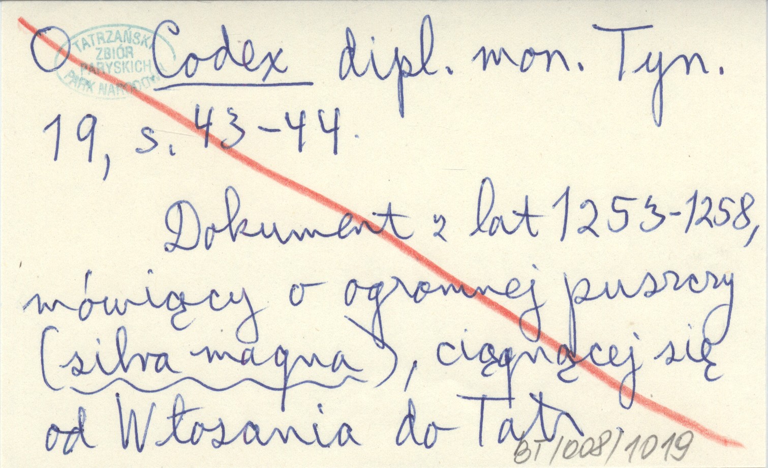 , 19: 43-44. Dokument z lat 1253-1258, mówiący o ogromnej puszczy (silva magna), ciągnącej się od Włosania do Tatr.