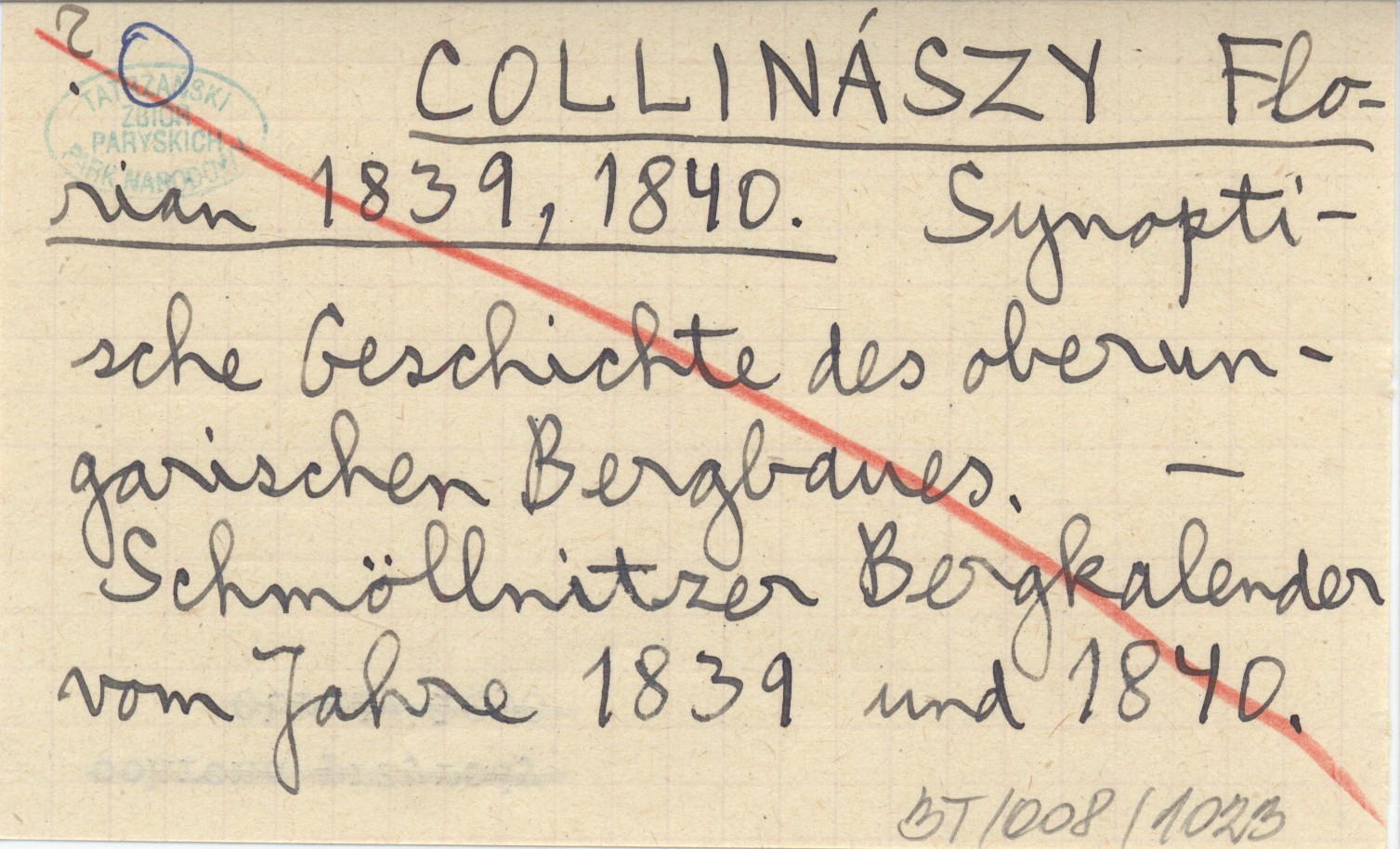 COLLINÁSZY Florian 1839, 1840 Synoptische Geschichte des oberungarischen Bergbaues.