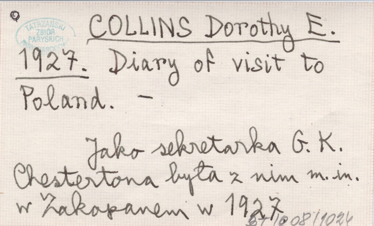 , Jako sekretarka G. K. Chestertona była z nim m. in. w Zakopanem w 1927.
