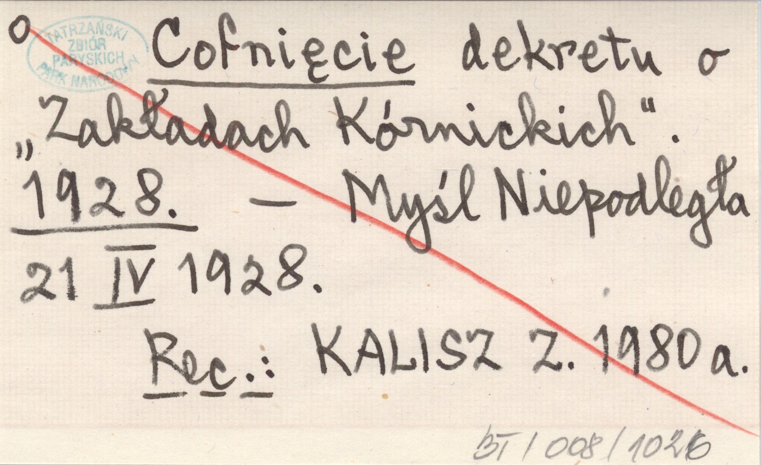 Myśl Niepodległa, 21 IV 1928. REC: KALISZ Z. 1980 a.