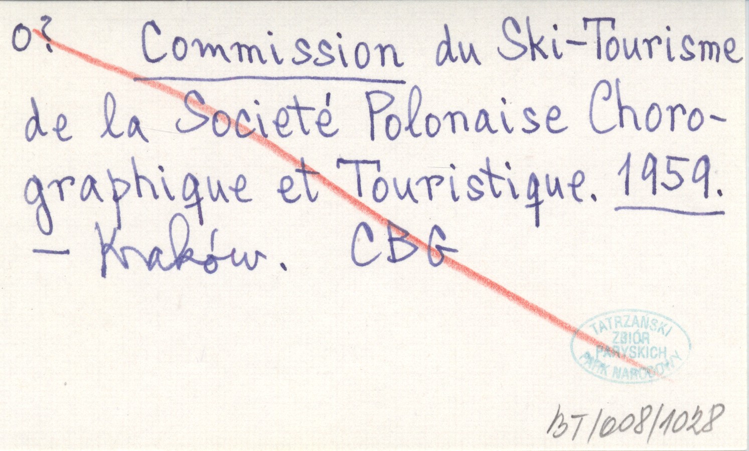 Commission du Ski-Tourisme de la Societé Polonaise Chorographique et Touristique. 1959