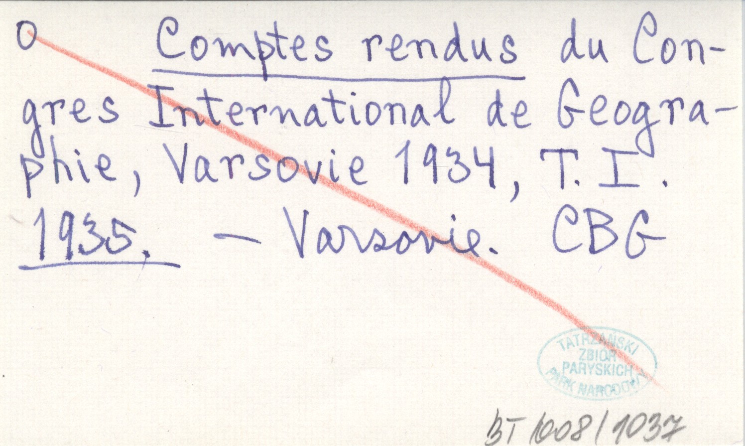 Comptes rendus du Congres International de Geographie, Varsovie 1934, T.I. 1935