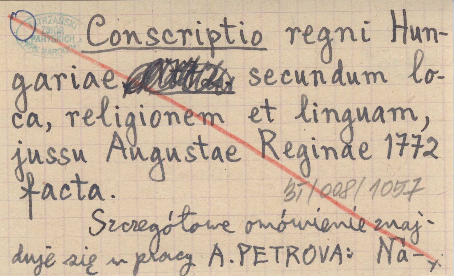 Conscriptio regni Hungariae, secundum loca, religionem et linguam, jussu Augustae Reginae 1772 facta.