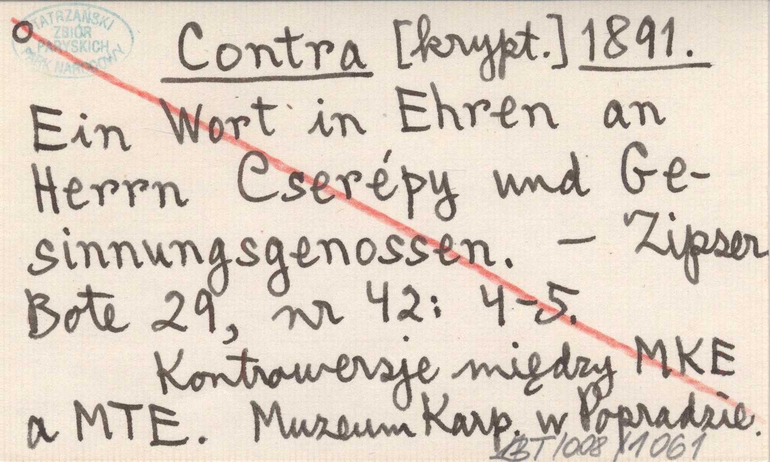 Contra 1891 Ein Wort in Ehren an errn Cserépy und Gesinningsgenossen.