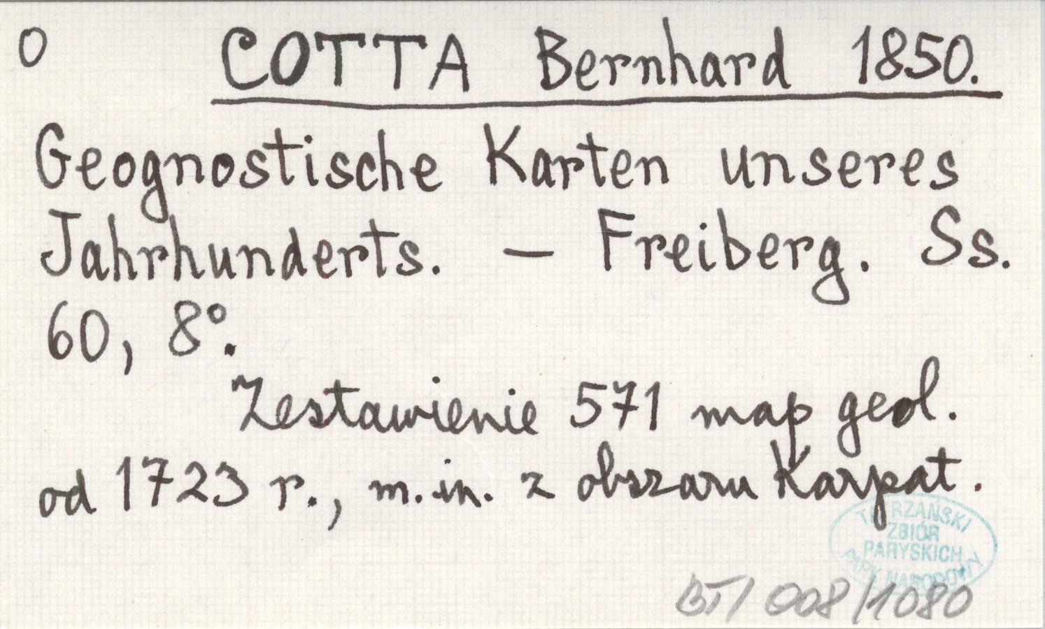 Freiberg , 60 s., 8°. Zestawienie 571 map geologicznych od 1723 r., m. in. z obrazu Karpat.
