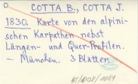 COTTA B. COTTA, J. ; 1830 Karte von den alpinischen Karpathen nebst Längen- und Quer-Profilen.