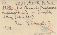 COUTURIER M. A. J. 1938 Le Chamois (Rupicapra rupicapra L.).