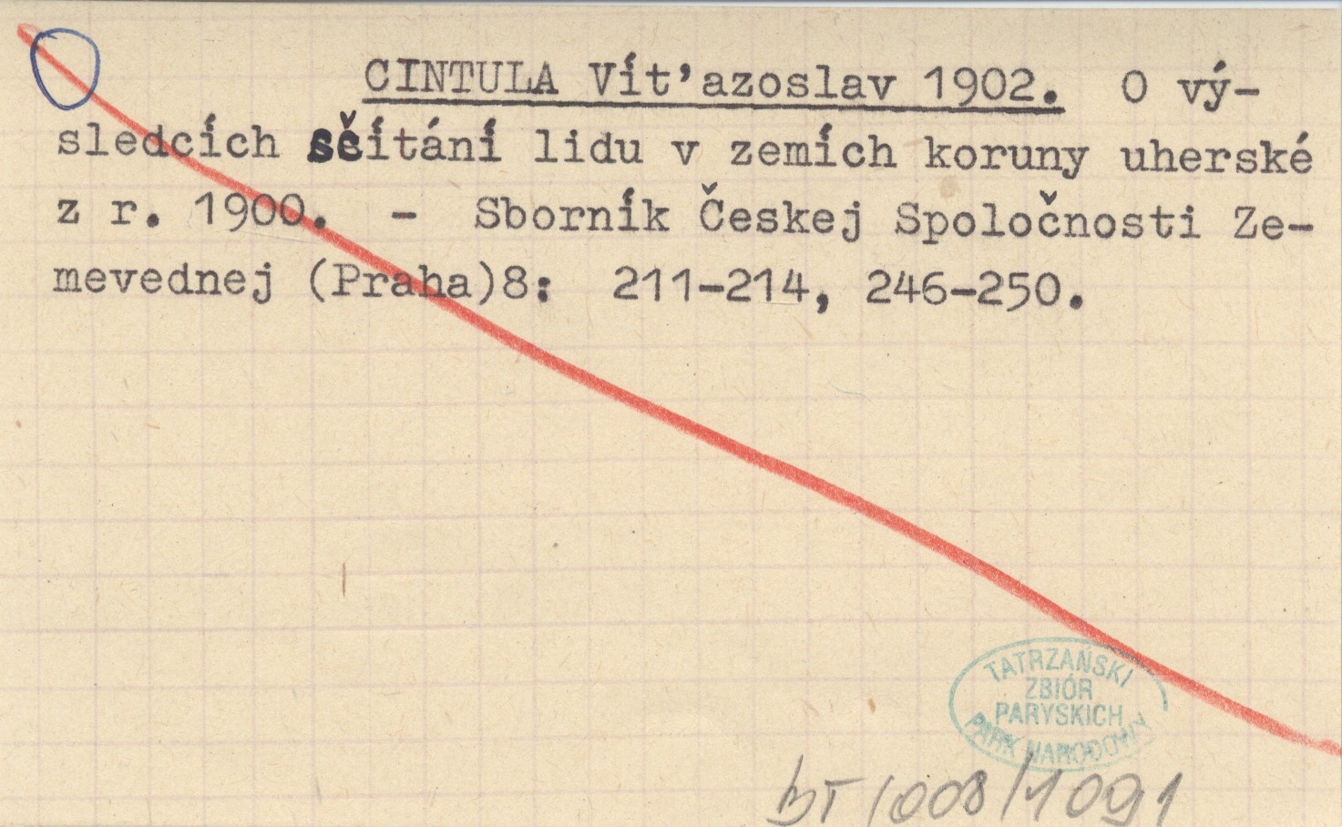 CINTULA Ví»azoslav 1902 O výsledcích sčítání lidu v zemích koruny uherské z r. 1900.