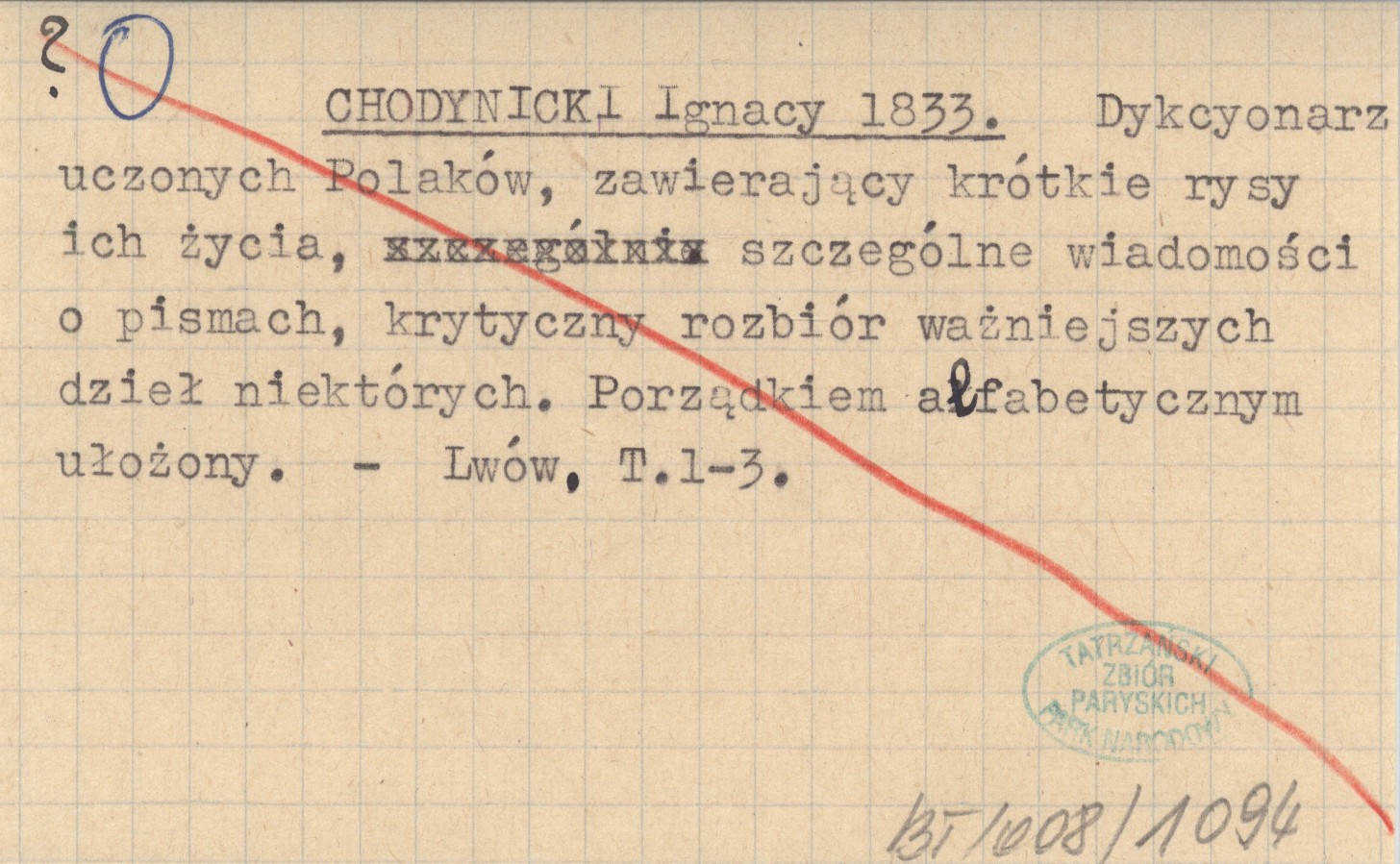 CHODYNICKI Ignacy 1833 Dykcyonarz uczonych Polaków, zawierający Krótkie rysy ich życia, szczególne wiadomości o pismach, krytyczny rozbiór ważniejszych dzieł niektórych. Porządkiem alfabetycznym ułożony.