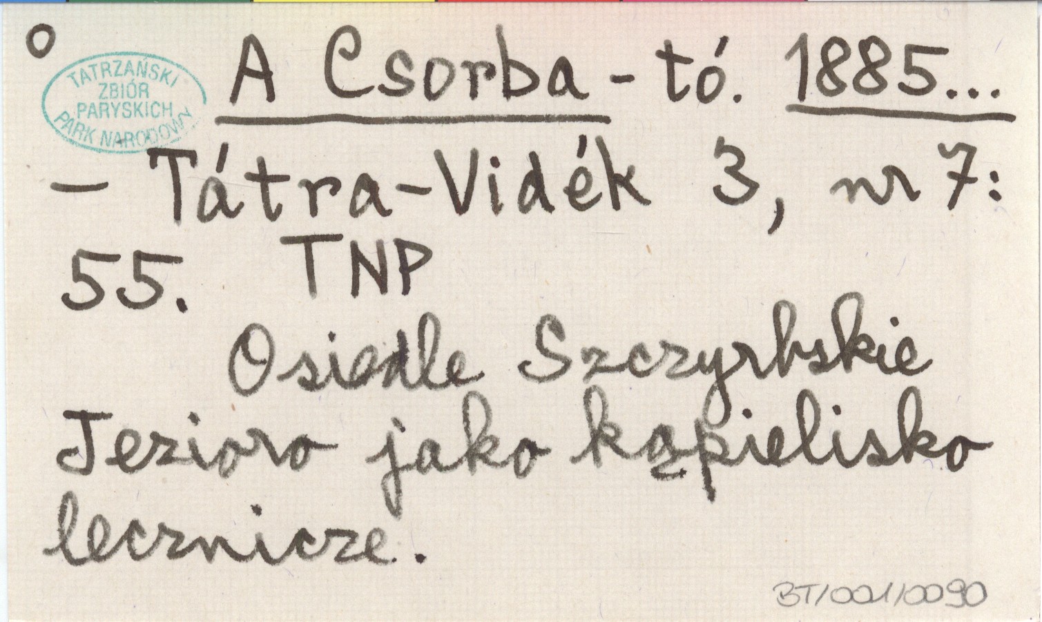 Tátra-Vidék, 3, nr 7: 55. Osiedle Szczyrbskie Jezioro jako kąpielisko lecznicze.