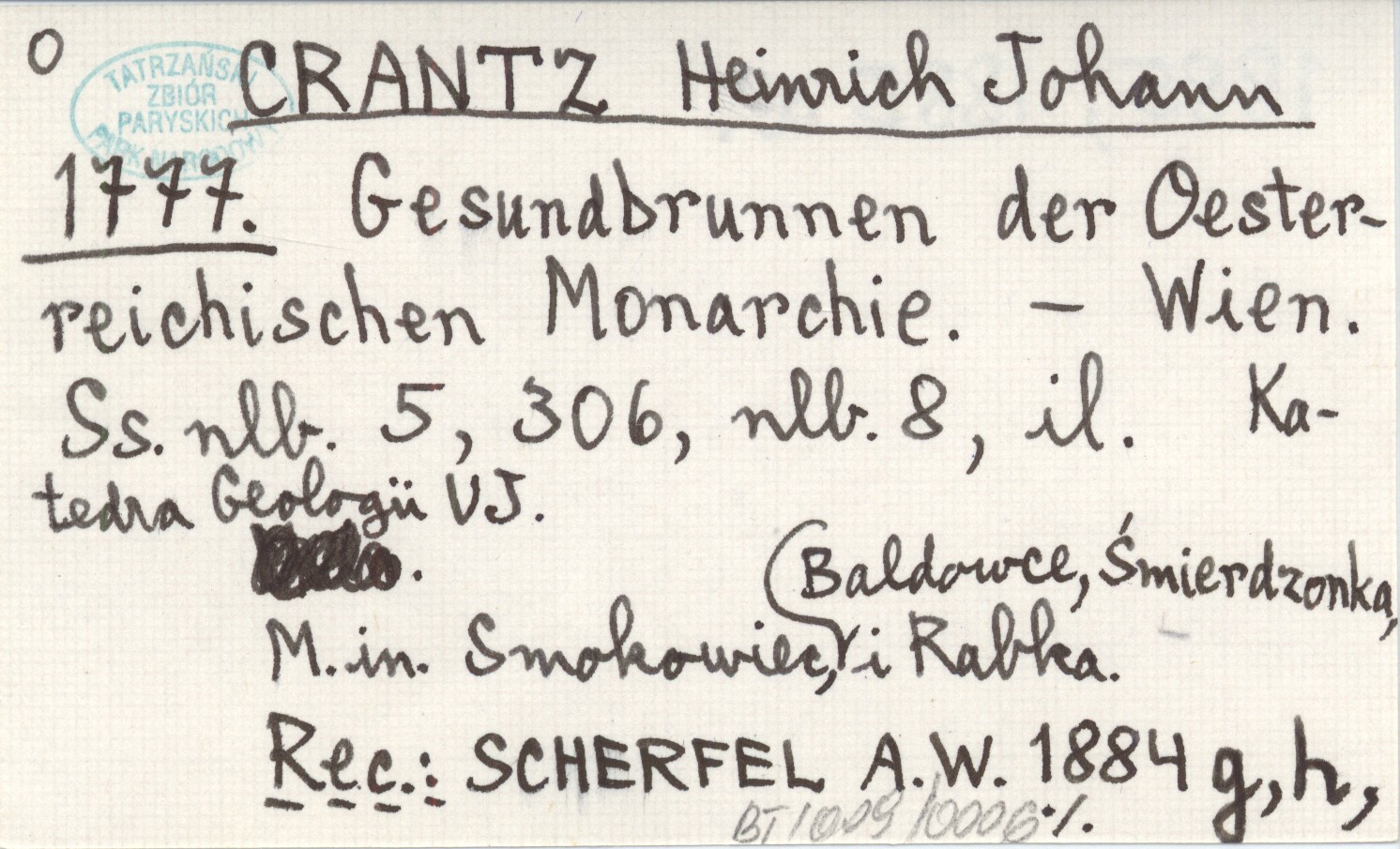 Katedra Geologii Uniwersytetu Jagiellońskiego, Wien , [5], 306, [8] s., il. M. in. Smokowiec, Baldowce, Śmierdzonka i Rabka. REC: SCHERFEL A. W. 1884 g, h, 1885, 1885 a.