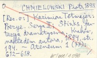 CHMIELOWSKI Piotr 1895 Kazimierz Tetmajer: Poezye. Serya II; Sfinks, fantazya dramatyczna. Kraków, nakładem autora, 1894, s. 194.