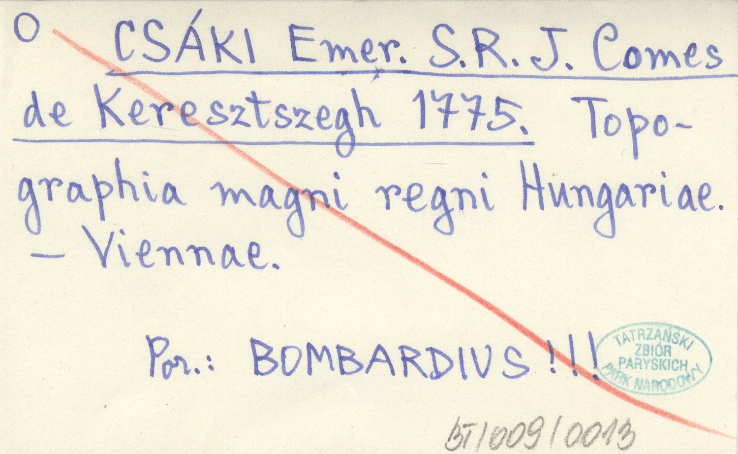 S. R. J. Comes de Kseresztszegh CSÁKI Emer. 1775 Topographia magni regni Hungariae.