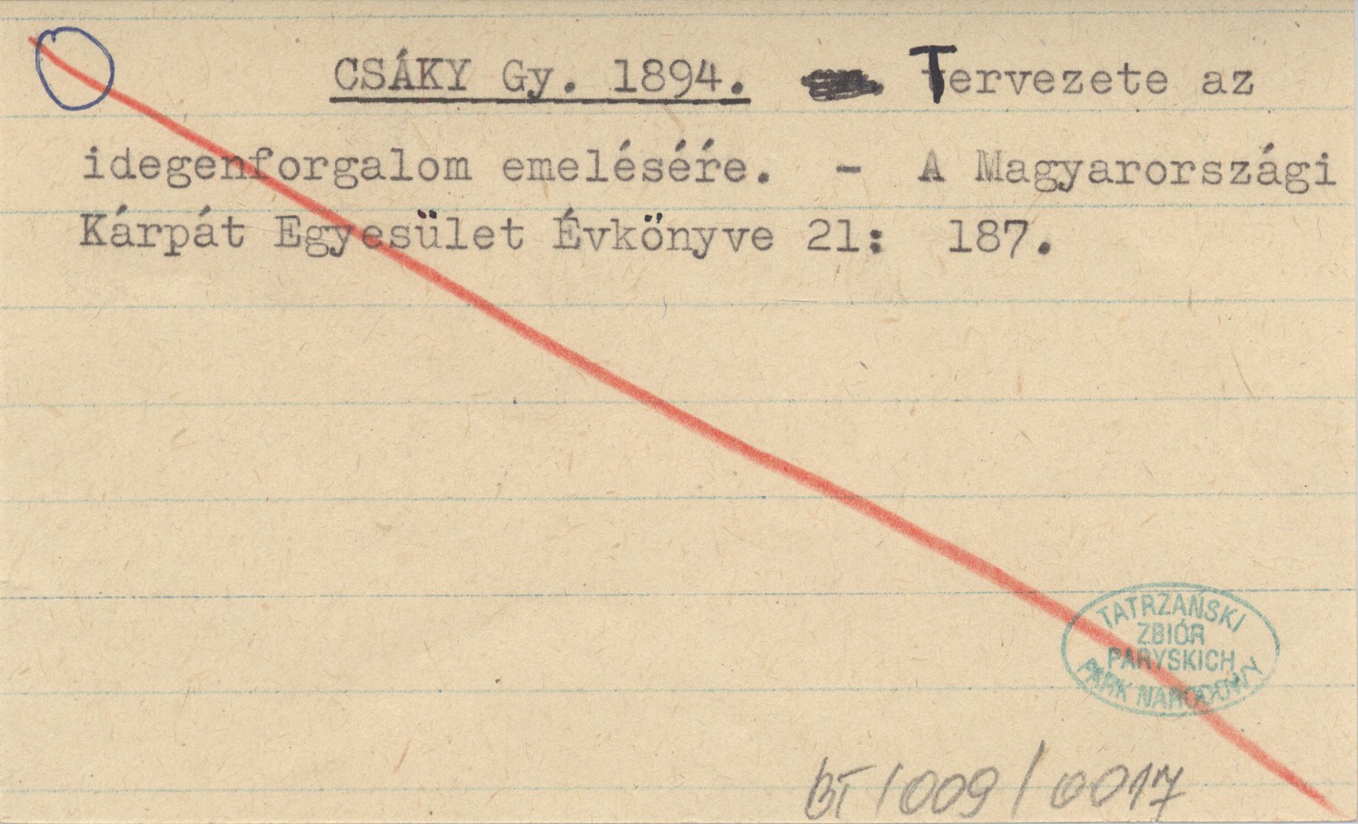CSÁKI Gy. 1894 Tervezete az idegenforgalom emeléséŕe.