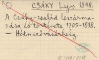 CSÁKI Lajos 1898 A Csáky-család leszármazása és története 1705-1898.