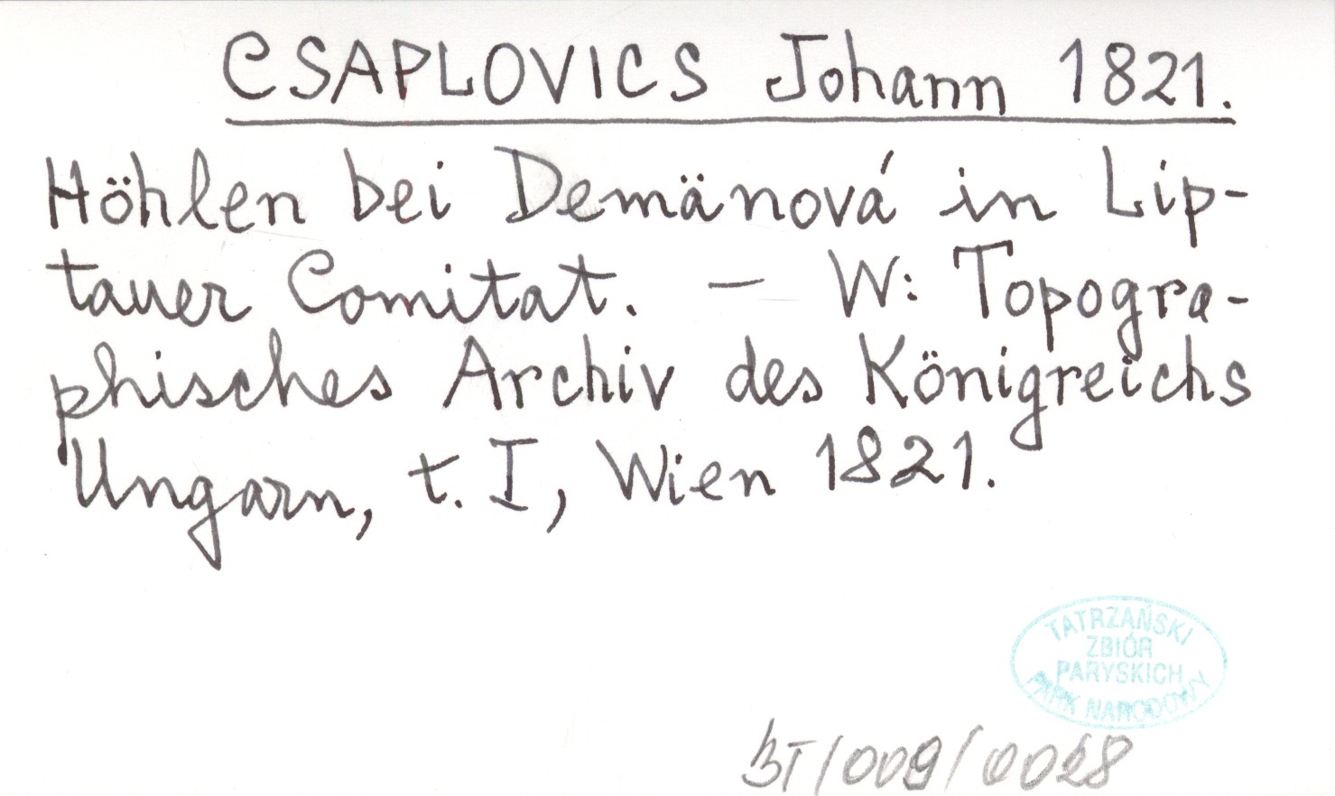CSAPLOVICS Johann 1821 Höhlen bei Demänová in Liptauer Comitat.