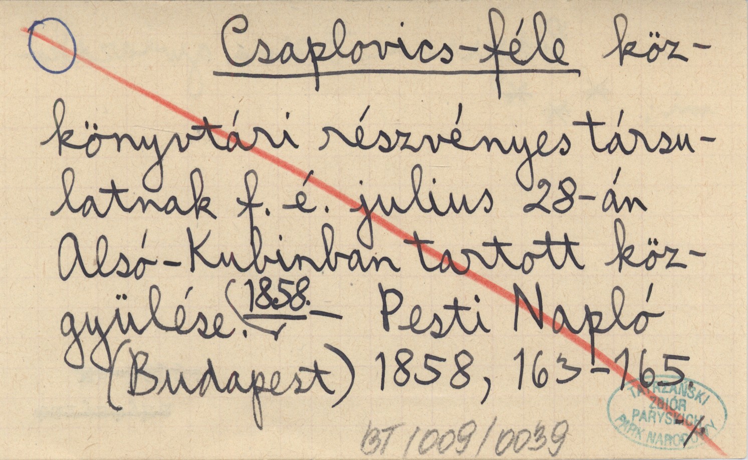 Csaplovics-féle kőzkőnyvtári részvényes társulatnak f. é. julius 28-án Alsó-Kubinban tartott kőzgyülése. 1858