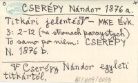 CSERÉPY Nándor 1876 a Titkári jelentés. Cserépy Nándor egyleti titkártól.