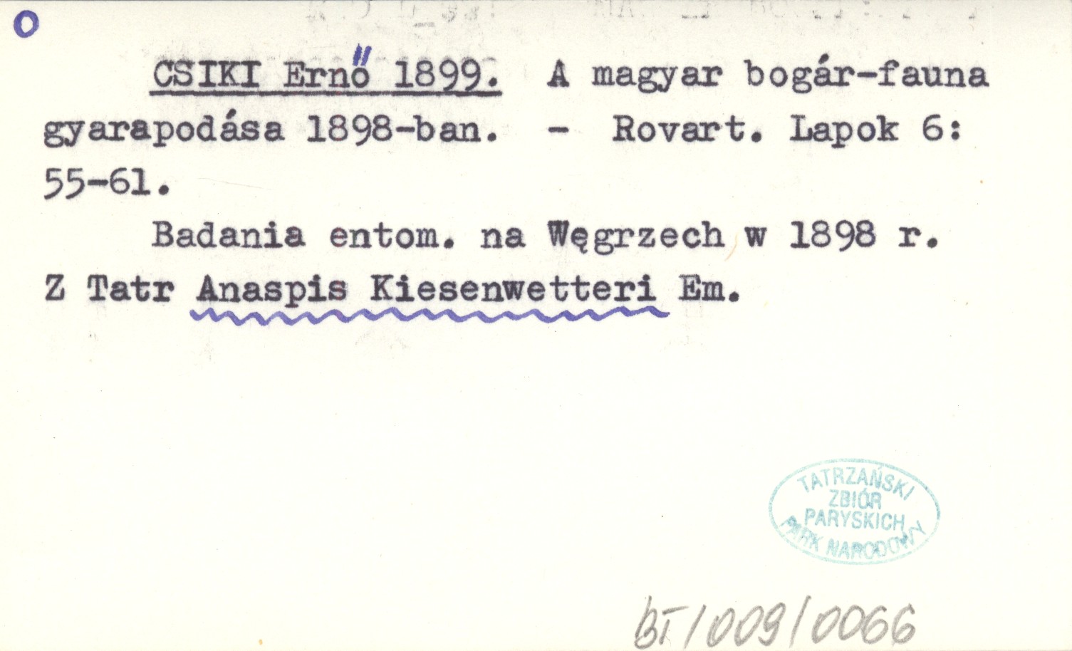 Rovart. Lapok, 6: 55-61. Badania entomologiczne na Węgrzech w 1898 r. Z Tatr Anaspis Kiesenwetteri Em.