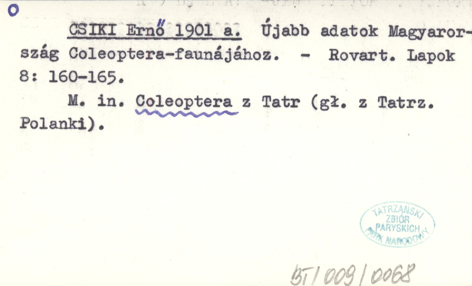 Rovart. Lapok, 8: 160-165. M. in. Coleoptera z Tatr (gł. Z Tatrzańskiej Polanki).