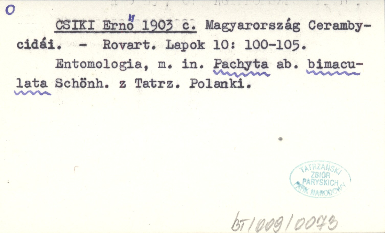 Rovart. Lapok, 10: 100-105. Entomologia, m. in. Pachyta ab. bimaculata Schönh. z Tatrzańskiej Polanki.