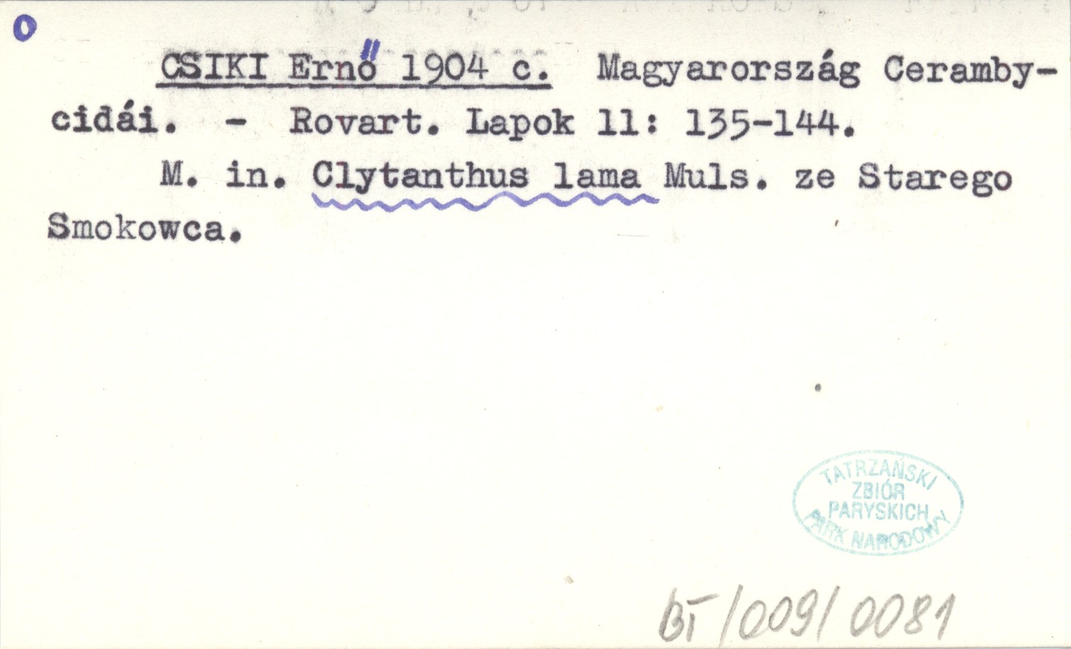 Rovart. Lapok, 11: 135-144. M. in. Clytanthus lama Muls. ze Starego Smokowca.